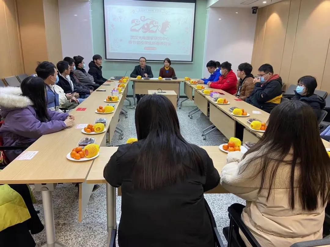 新闻网讯(通讯员 吴雨桐 孙锦)2月8日中午,武汉光电国家研究中心春节留校学生新春茶话会在光电信息大楼C115会议室举行,研究中心副主任朱䒟、副书记韩晶和研究生事务办主任袁龙炎看望慰问春节期间留校的研究生。