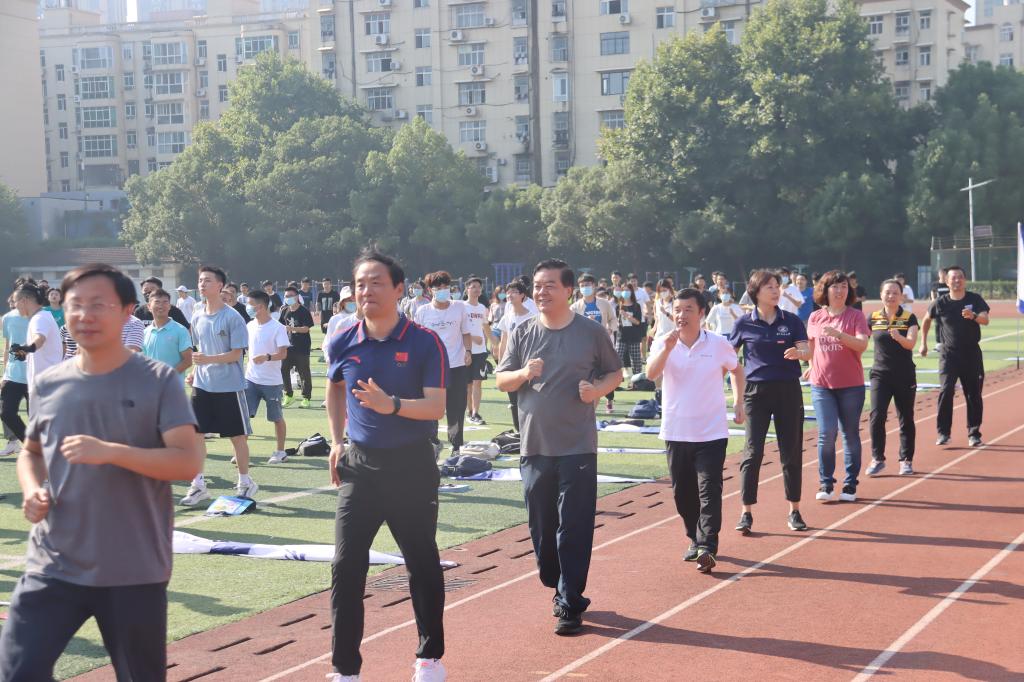 校党委副书记马建辉宣布开幕。在体育学院韦丹和冀阳老师的带领下,全场挥动臂膀、舒展身体,为接下来的趣味比赛“燃”起热情。