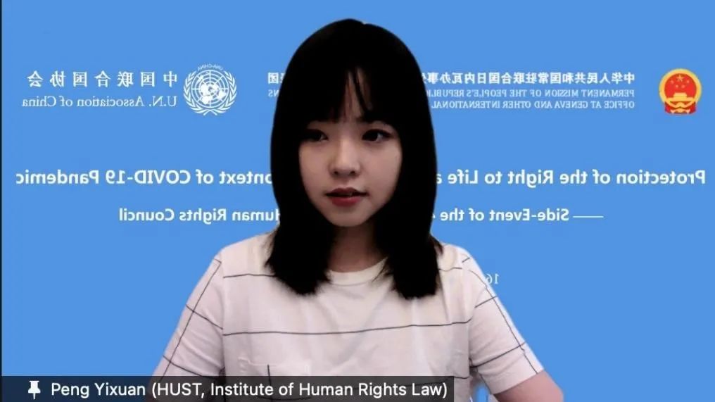 新闻网讯 近日,联合国人权理事会第48届会议“新冠肺炎疫情大流行下的生命健康权保障(Protection of the Right to Life and Health in the Context of COVID-19 Pandemic)”边会以云上会议方式举行。来自中国、荷兰、阿根廷等国的多位政府官员和专家表示,多边主义是应对疫情等全球共同挑战的唯一正确途径。rabey雷竞技法学院2020级法学理论方向博士生彭艺璇参加此次云上边会并作主旨发言。