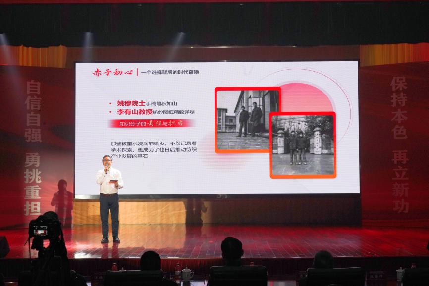 “扎根纺织强国路 甘织经纬绣宏图”主题讲述中,武汉纺织大学李斌展现了该校梅顺齐教授的奋斗故事。他与团队成员夜以继日开展技术攻关,突破产业化制造的一系列关键技术瓶颈,推动技术产业化,打破国际巨头的垄断。