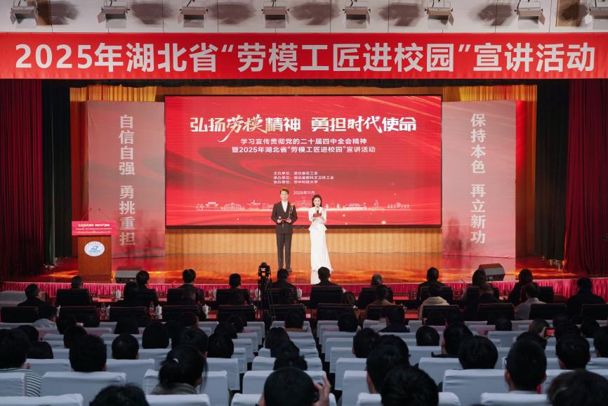 新闻网讯(记者 牟梓苓霄)11月20日,“弘扬劳模精神勇担时代使命”学习宣传贯彻党的二十届四中全会精神暨2025年湖北省“劳模工匠进校园”宣讲活动在管理学院报告厅举办。湖北省总工会党组书记、常务副主席陈惠霞,党组成员、经审会主任汪胜全,党组成员、秘书长汪砺锋;湖北省教科文卫体工会主席熊晓泉;校党委副书记谢正学参加活动。